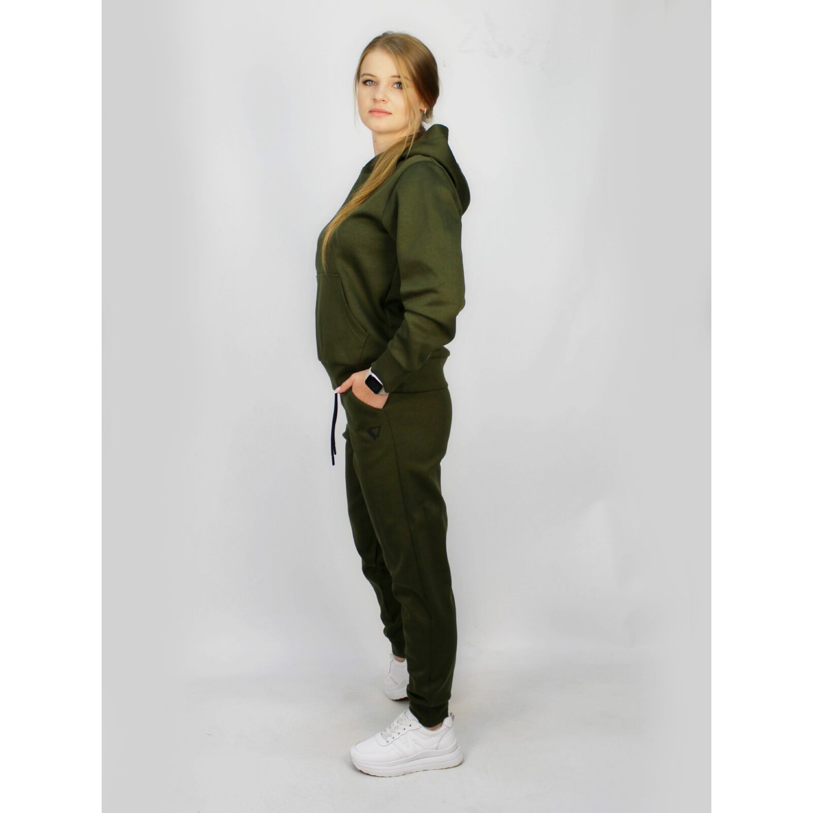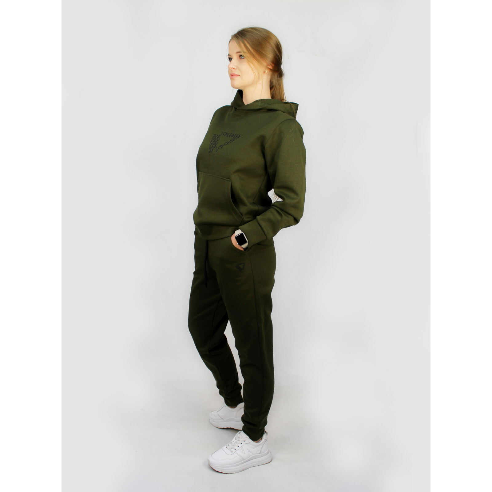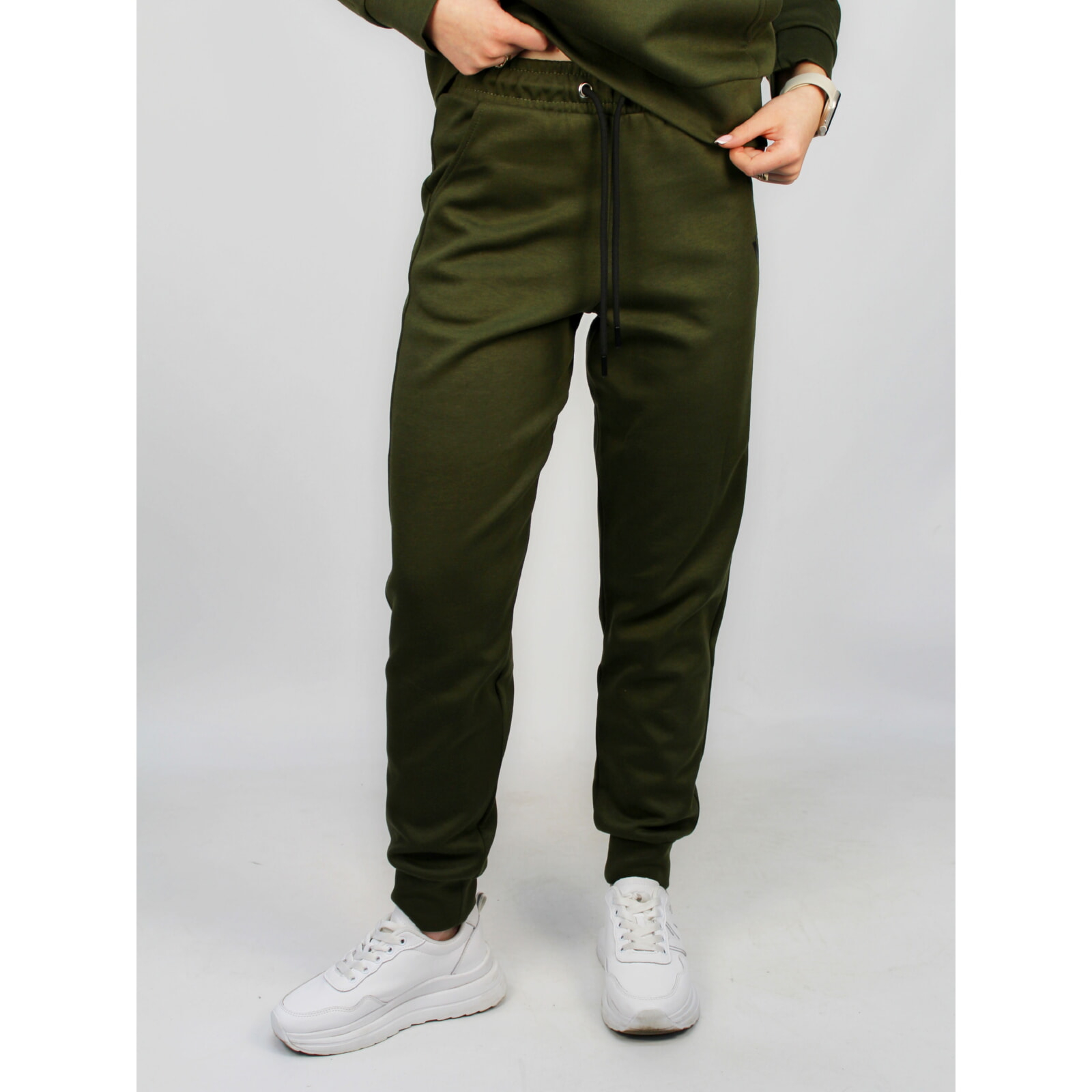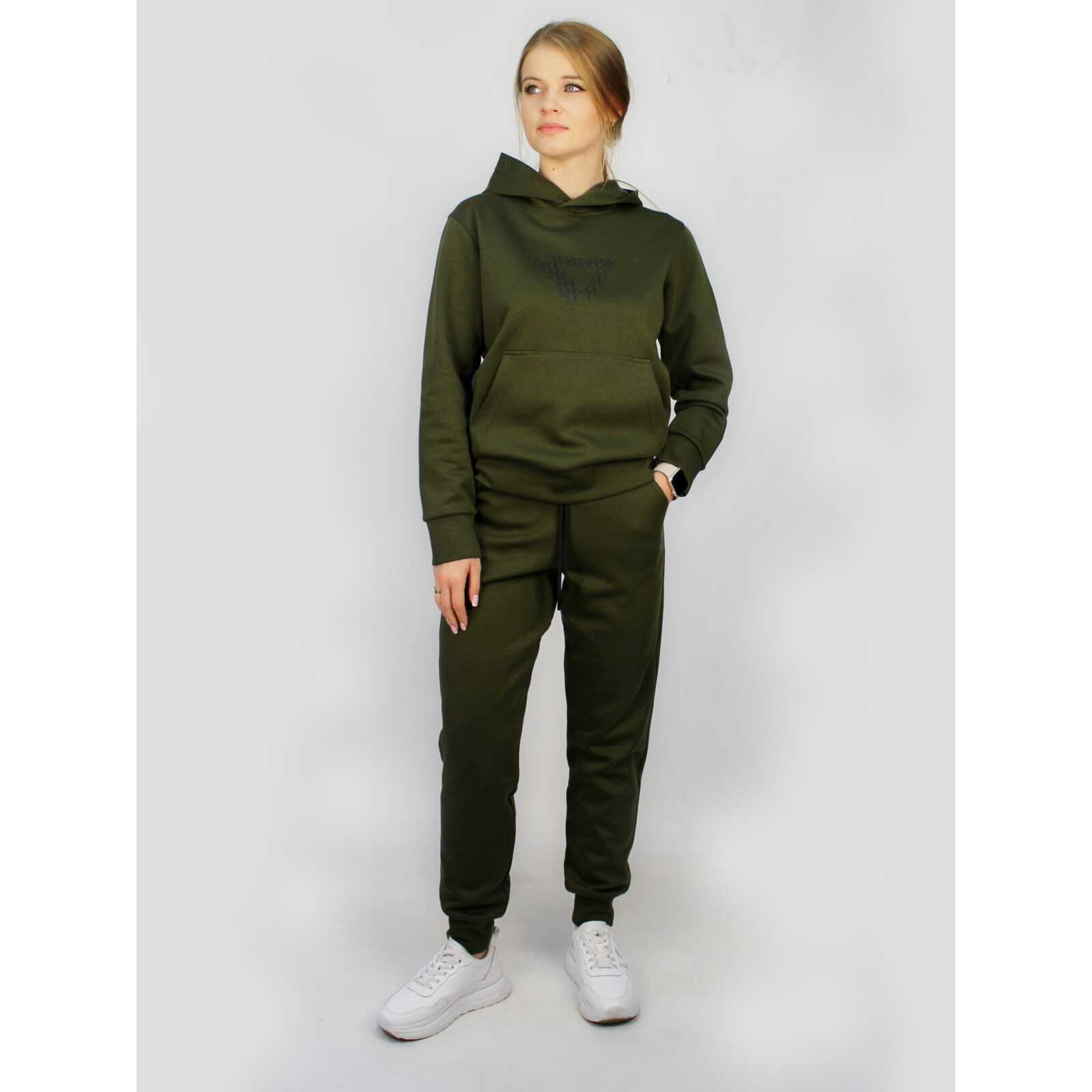 Спортивний костюм виконано в модних кольорах хаки та сірому. Стильний крій з еластичними манжетами, міцні застібки-блискавки та зручні кишені створюють сучасний образ.