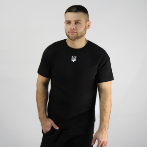 Футболка представлена у класичному чорному кольорі, має вільний крій, що додає комфорту при носінні. Відсутність зайвих деталей робить її універсальною та стильною.